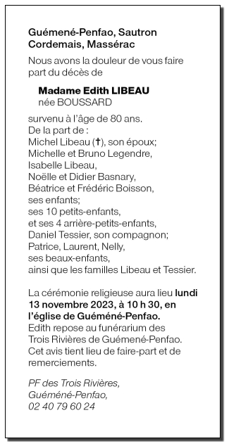 Madame Edith LIBEAU née BOUSSARD